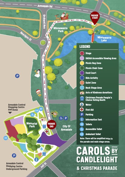 Carols: 6.30 – 8.00pm Memorial Park, Armadale